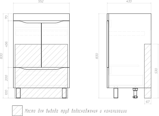 - 2 дверцы, 1 ящик снизу.