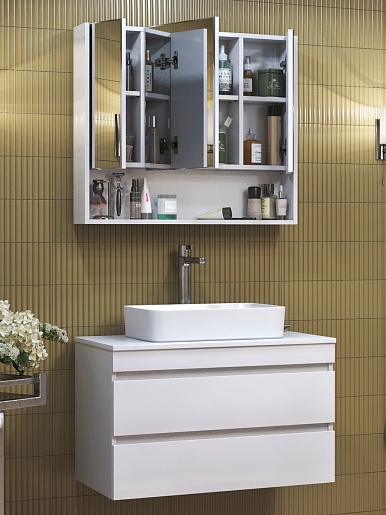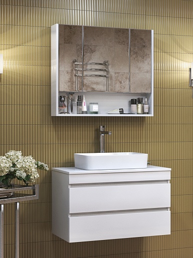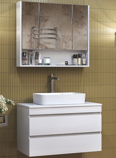 В комплекте: тумба, раковина, зеркальный шкаф, крепеж, сифон.