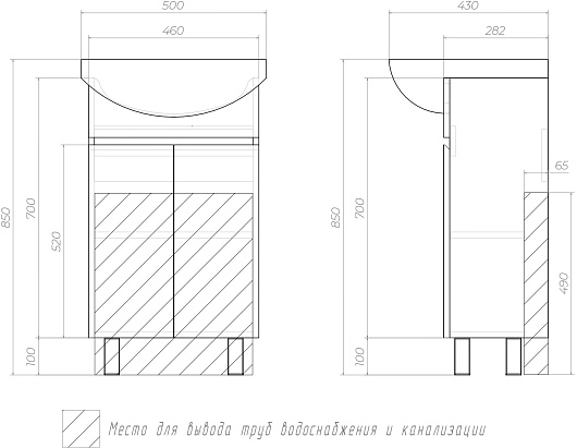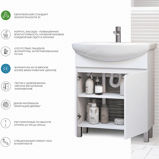 Тумба с раковиной Vigo Wing 500-2-0 - арт. tn.WIN.BAL.50.2D белый / 1WH501701 (4640021624456).