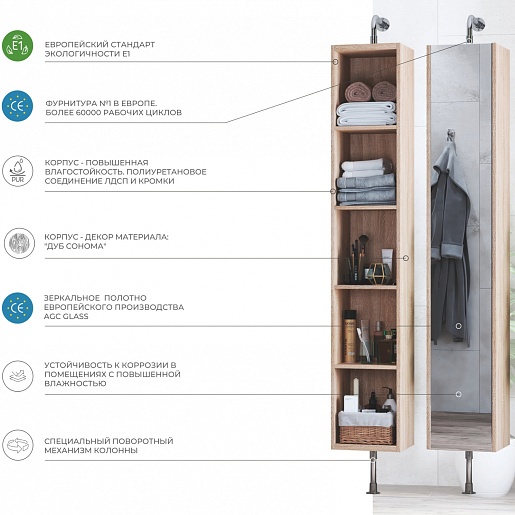 Vigo Шкаф пенал Grani 300 поворотный дуб сонома/зеркальный
