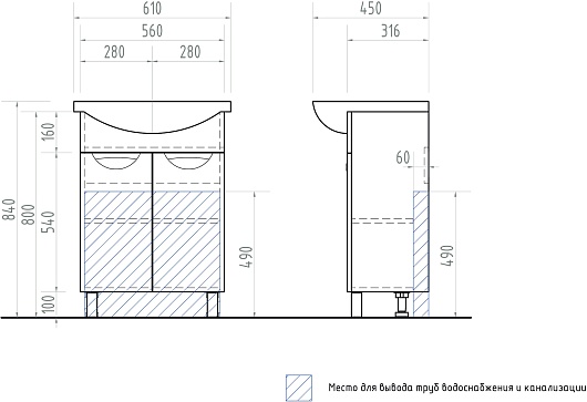 - 2 распашных дверцы.