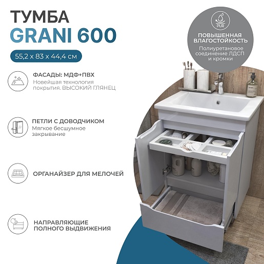 Тумба под раковину Vigo Grani 600-2-1 - арт. 284.