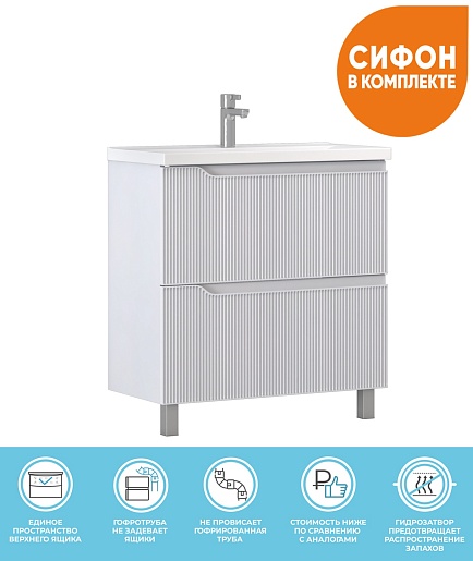 В комплекте: тумба, сифон, ножка (2 шт.).