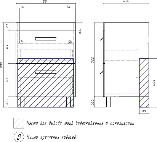 В комплекте: тумба, сифон, ножка (4 шт.).