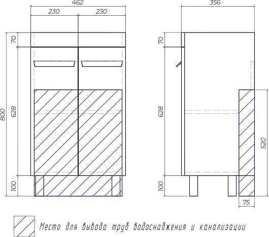 В комплекте: тумба, сифон, ножка (4 шт.).
