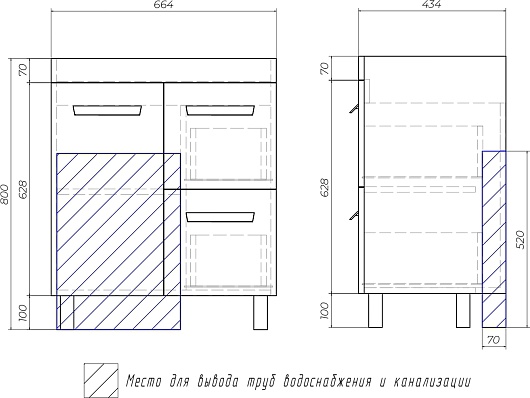 В комплекте: тумба, сифон, ножка (4 шт.).