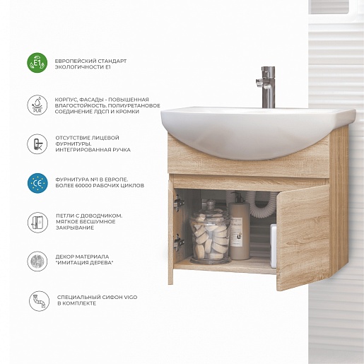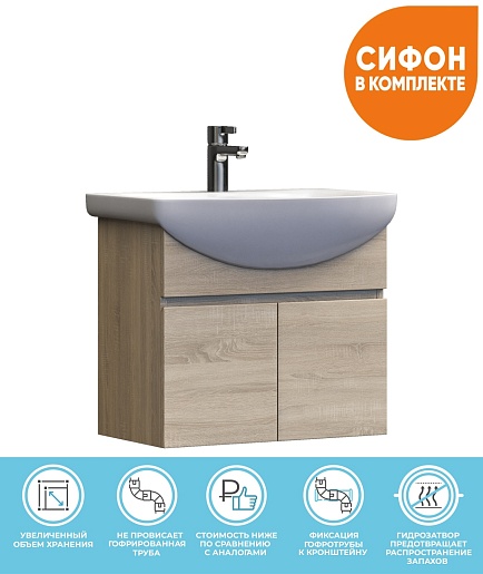 Подвесная тумба под раковину Vigo Wing 600-2-0 - арт. tp.WIN.BAL.60.2D дуб сонома.