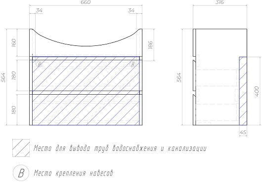 Подвесная тумба под раковину Vigo Wing 700-0-2 - арт. tp.WIN.BAL.70.2Y дуб сонома.