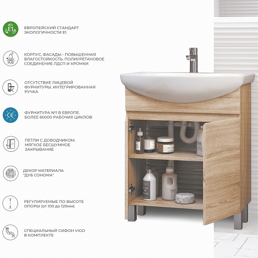 В комплекте: тумба, сифон, ножка (4 шт.).