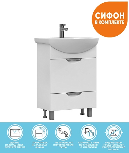 Комплектация: тумба, раковина, сифон, ножка (4 шт.).