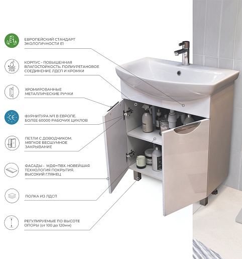 В комплекте: тумба, раковина, ножка (4 шт.).