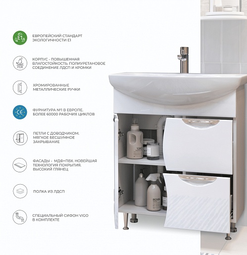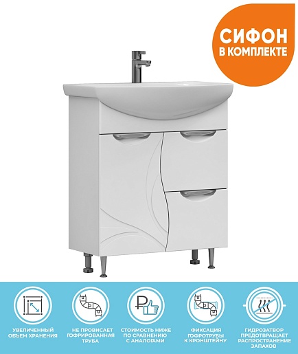 Комплектация: тумба под раковину, раковина, сифон, ножки (4 шт.).