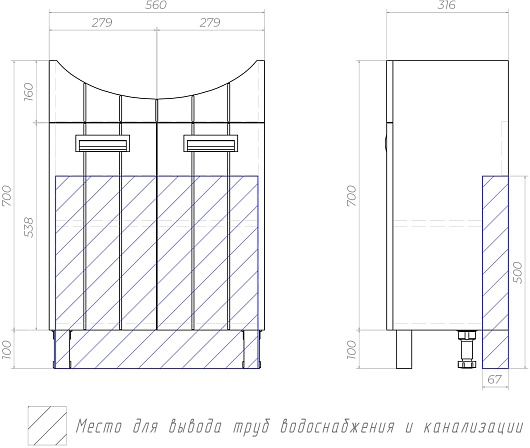 Тумба с раковиной Vigo Diana 60 - арт. tn.DIA.PAL.60.2D / Палермо 600.