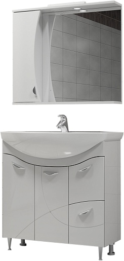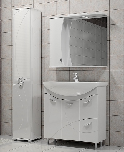 - тумба под раковину: 3 распашных дверцы с механизмом плавного закрывания и 2 выдвижных ящика с системой полного выдвижения, 5 металлических ручек (хром), регулируемые ножки