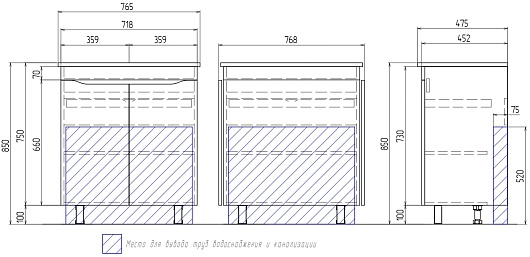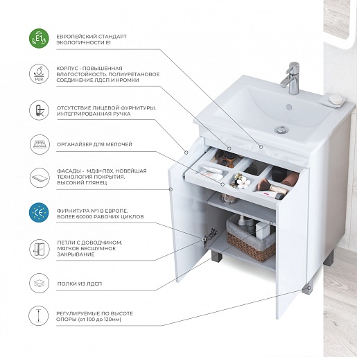 В комплекте: тумба, раковина, ножка (4 шт.).