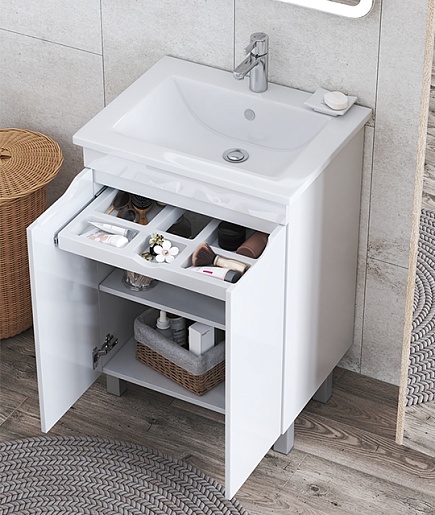 - Система хранения: 2 распашные дверцы, выдвижной органайзер для мелочей.