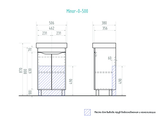 Тумба с раковиной Vigo Minor 50 - Minor-0-500(Тигода) / WH302128.