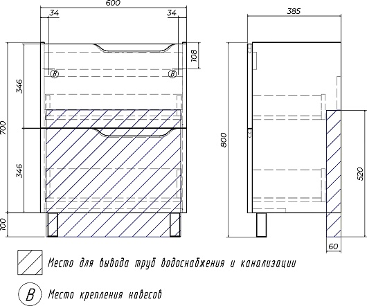 Тумба с раковиной Vigo Neo 600-0-2 - арт. tn.NEO.9696.60.2Y / 9696-60.