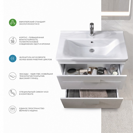 Тумба с раковиной Vigo Nova 600 - арт. tn.NOV.MIR.60.2Y / 1WH302421.