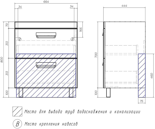 Тумба с раковиной Vigo Plaza 2-700 - арт. tn.PLA.FOS.70.2Y / Фостер 70.
