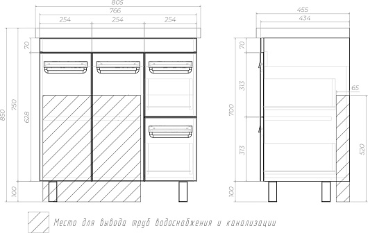 В комплекте: тумба, раковина, ножка (4 шт.).