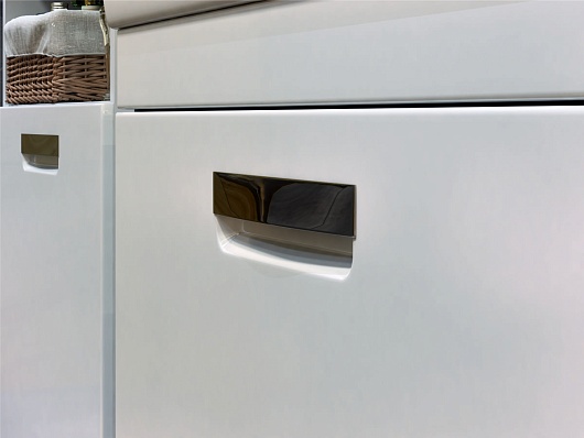- Скрытые направляющие полного выдвижения с механизмом мягкого бесшумного самозакрывания.