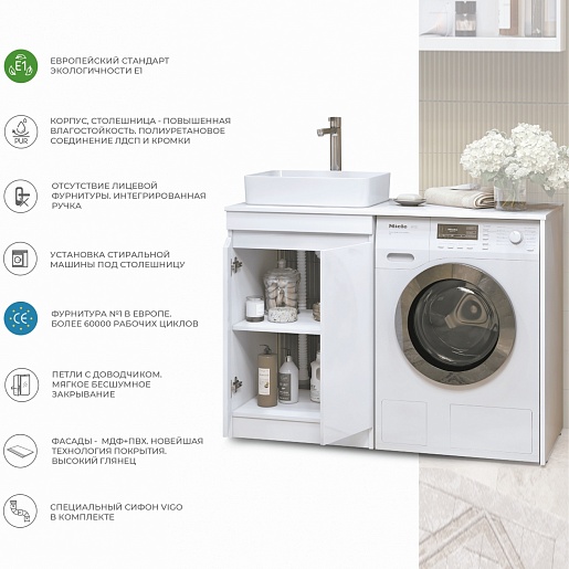 Vigo Тумба с раковиной Urban 600-2-0 со столешницей под стиральную машину белая