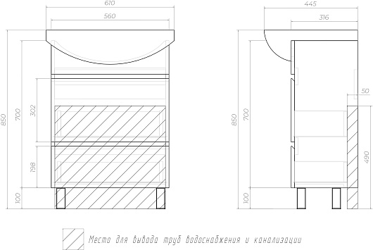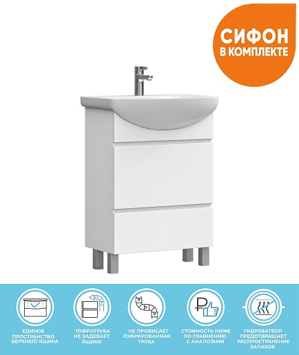 Тумба с раковиной Vigo Wing 600-0-2 - арт. tn.WIN.BAL.60.2Y белый / 1.WH11.0.246.
