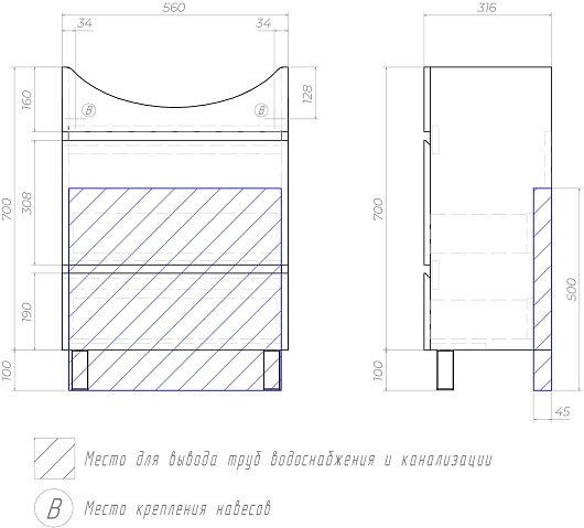 - Раковина с переливом.