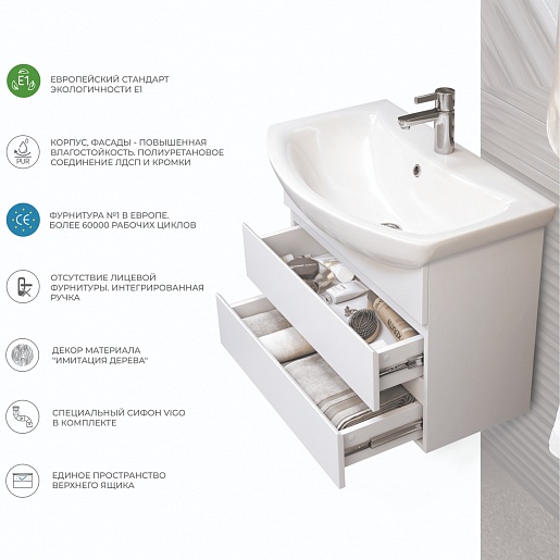 Подвесная тумба с раковиной Vigo Wing 600-0-2 - арт. tp.WIN.BAL.60.2Y белый / 1.WH11.0.246.