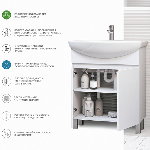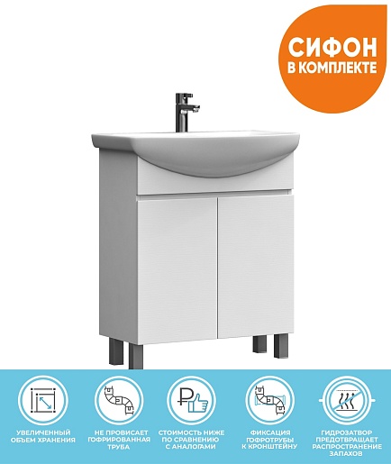 В комплекте: тумба, раковина, сифон, ножка (4 шт.).