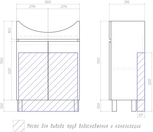 Тумба с раковиной Vigo Wing 600-2-0 - арт. tn.WIN.BAL.60.2D белый / 1.WH11.0.246.