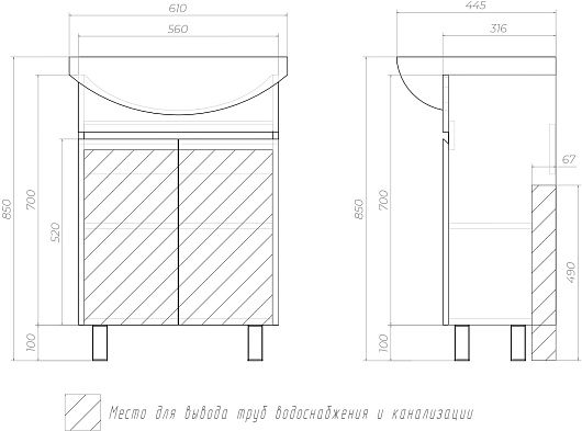 Vigo Тумба с раковиной Wing 600-2-0 белая