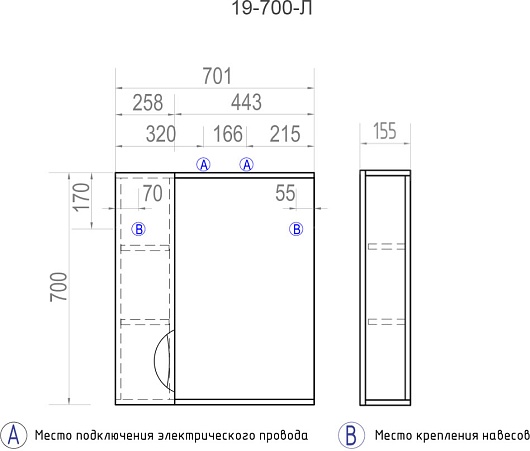 Зеркальный шкаф Vigo Callao 70 L - арт. z.CAL.70.L.El.
