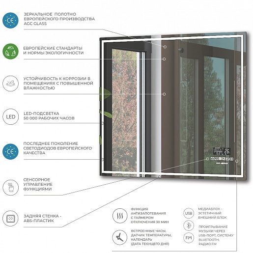 Зеркало Vigo Geometry Media 800 - арт. z.GEO.80.Media.