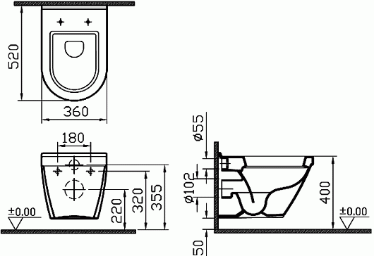 - Унитаз VitrA S50 7740B003-0075 безободковый