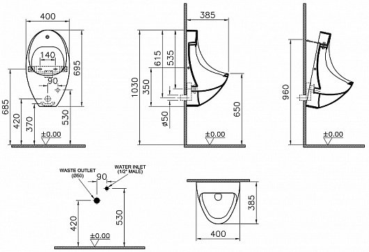 Vitra Писсуар Arkitekt 4106B003-5291 с сенсорным управлением