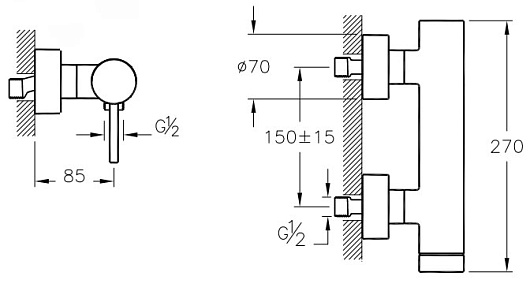 - настенный монтаж на два отверстия