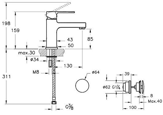 - Смеситель для раковины Vitra Q Line A40775EXP