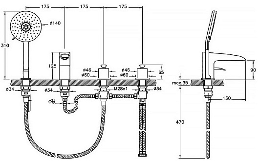 - T4 ручной душ и шланг chroma-tech в комплекте