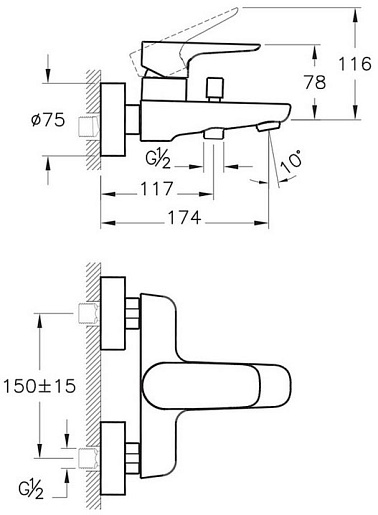 - настенный монтаж на два отверстия