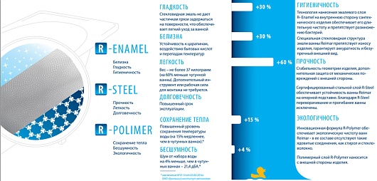 - инновационный полимерный слой с внешней стороны ванны для шумопоглощения и сохранения тепла