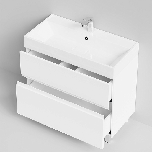 - Тумба с раковиной Аббат 90: умывальник Мальта 90, тумба под раковину, ящики с доводчиками.