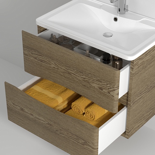 Подвесная тумба с раковиной Водолей Adel 90 дуб крымский коричневый.