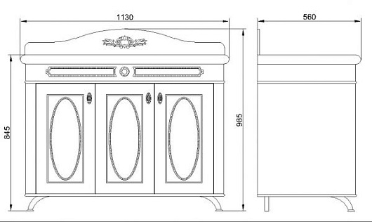 - Тумба с раковиной Анжелика 110: Умывальник врезной Vitra 6069 B003-0012 , столешница S1, тумба под раковину, фасад F-1, ручки и ножки из металла, петли с доводчиками