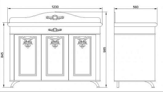 - Тумба с раковиной Анжелика 120: Умывальник врезной Vitra 6069 B003-0012 , столешница S1, тумба под раковину, фасад F-3, ручки и ножки из металла, петли с доводчиками