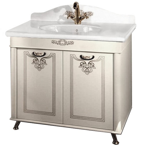 - Тумба с раковиной Анжелика 90: раковина Vitra 6069 B003-0012, столешница S1, тумба под раковину, фасад F-3, ручки и ножки из металла, петли с доводчиками