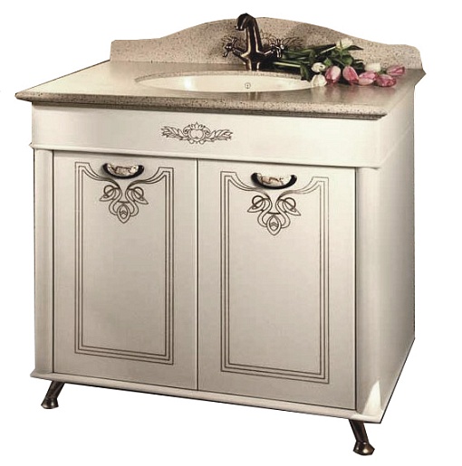 - Тумба с раковиной Анжелика 90: раковина Vitra 6069 B003-0012, столешница S1, тумба под раковину, фасад F-3, ручки и ножки из металла, петли с доводчиками