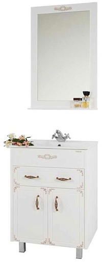 - Тумба с раковиной Барбара 60: раковина Ницца Д 60 (Melana), тумба под раковину, ручки и ножки из металла, петли и ящики с доводчиками (производства «Hettich», Австрия)