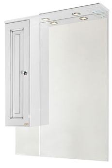 - Зеркальный шкаф Белладжио 75 R: распашной шкаф, петли с доводчиками, ручка (металл, стекло), галогенный светильник - 2 шт., выключатель и розетка